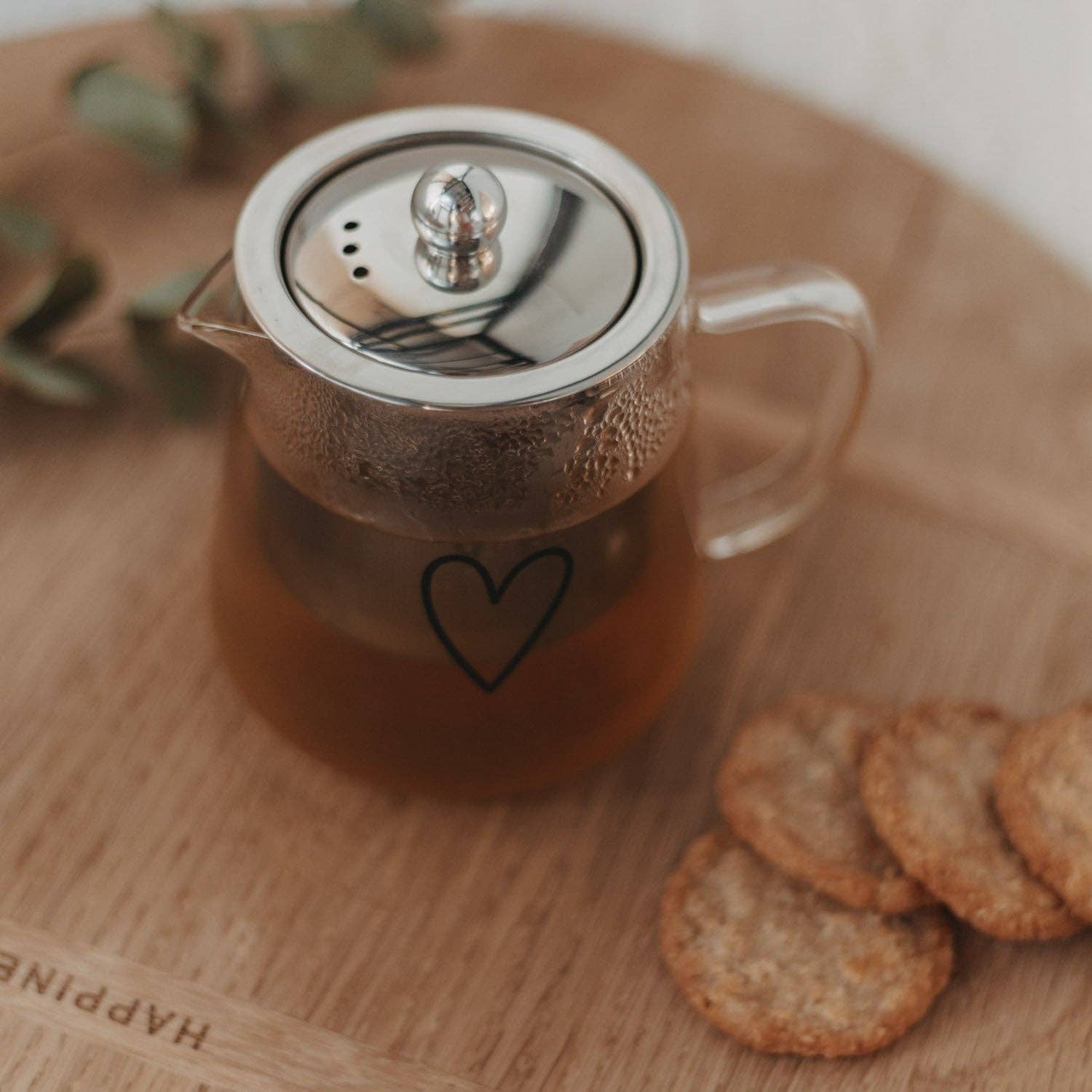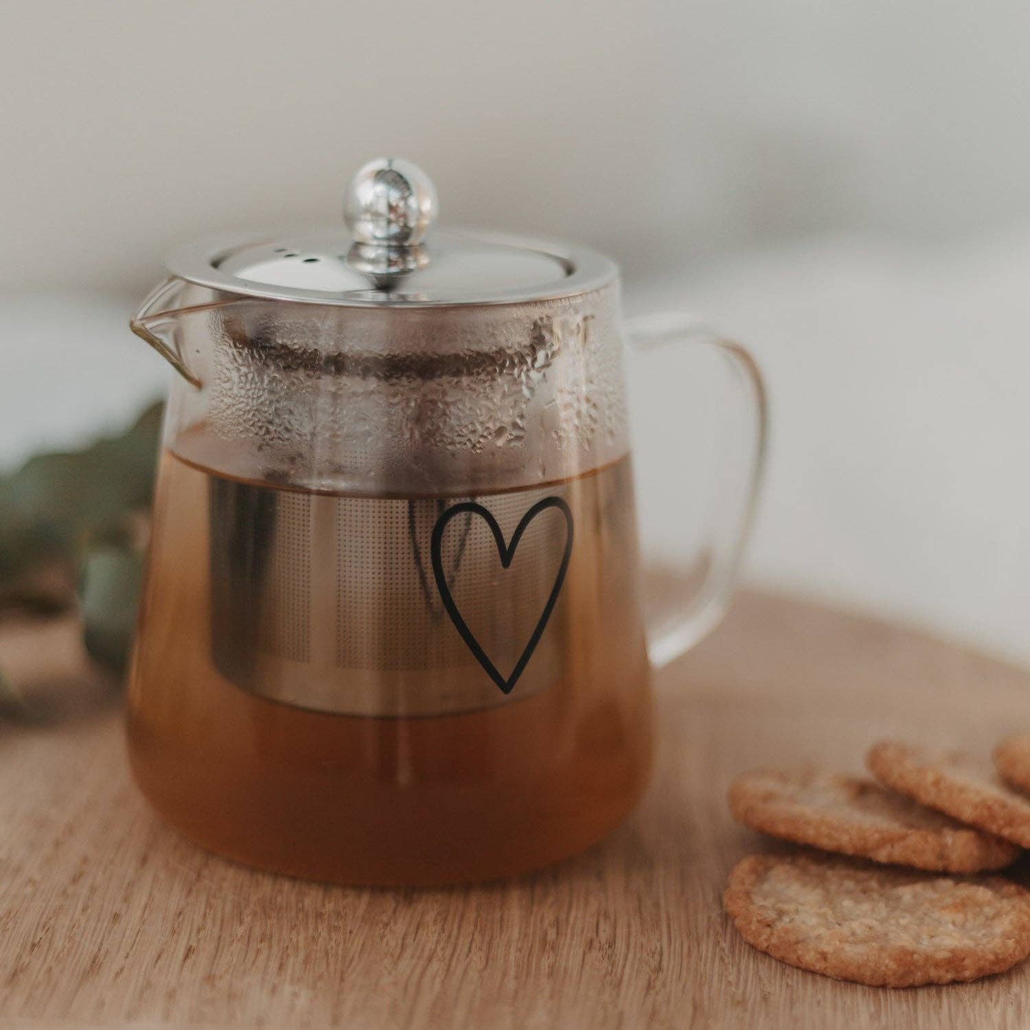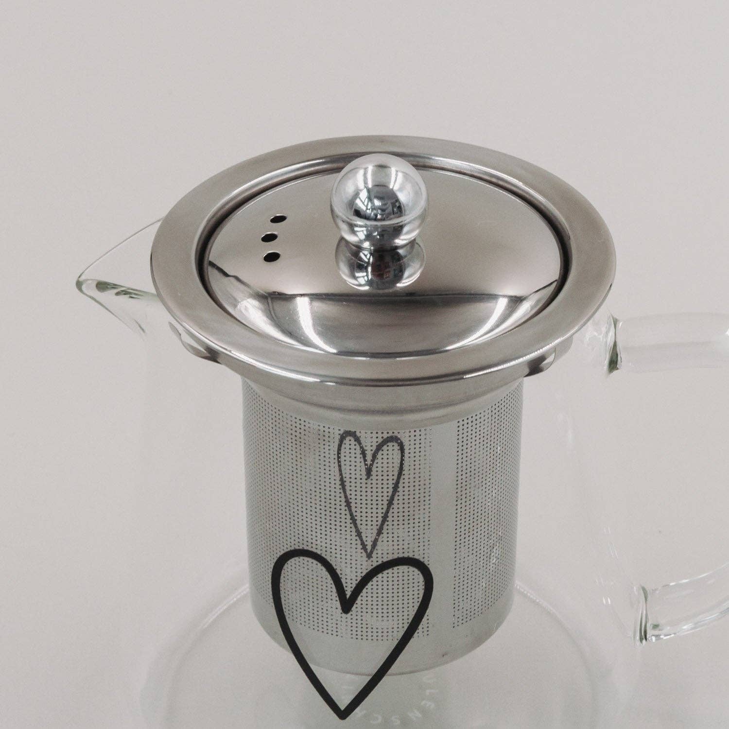Son design épuré en verre transparent est rehaussé d'un grand cœur noir, apportant une touche de charme tout en conservant une allure moderne. Qu'elle serve de centre de table ou d'accessoire pratique au quotidien, cette théière allie esthétique et fonctionnalité.